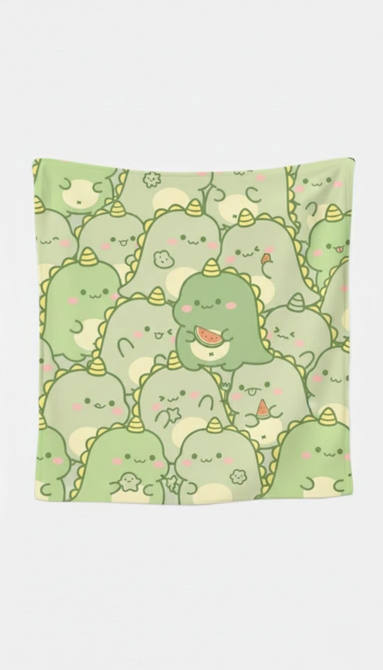 Have you ever envisioned a prehistoric world where the fiercest creatures are actually the sweetest companions? Our Happy Green Dinosaur Personalized Blanket Set is the premier choice for parents who want to combine a playful “Kawaii” aesthetic with high-performance durability. This delightful design, featuring a repeating pattern of friendly green dinosaurs enjoying sweet watermelon treats, creates a joyful and vibrant atmosphere for any rest time—and the most incredible part is that you can personalize both the blanket and the backpack with a custom name!