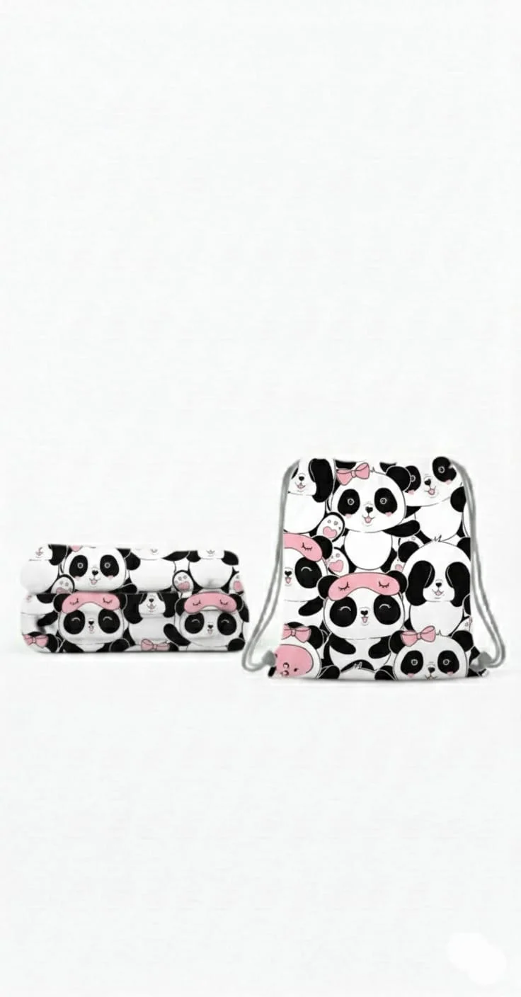 Have you ever imagined a peaceful world where the softest friends watch over your little one’s dreams? Our Panda Dreams Personalized Blanket Set is the premier selection for parents who wish to combine a charming “Kawaii” aesthetic with high-performance durability. This heartwarming design, featuring a repeating pattern of adorable pandas with pink bows and sleepy eyes, creates a serene and joyful atmosphere for any rest time—and the most incredible part is that you can personalize both the blanket and the backpack with a custom name!